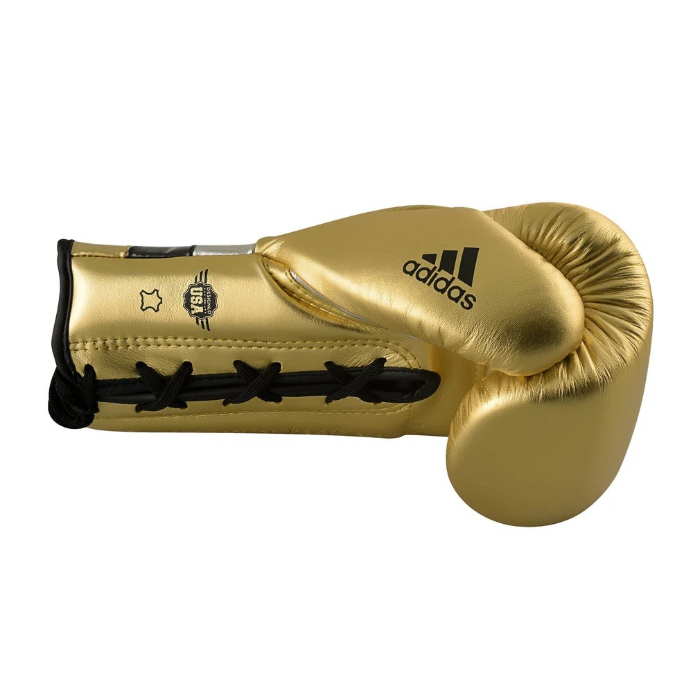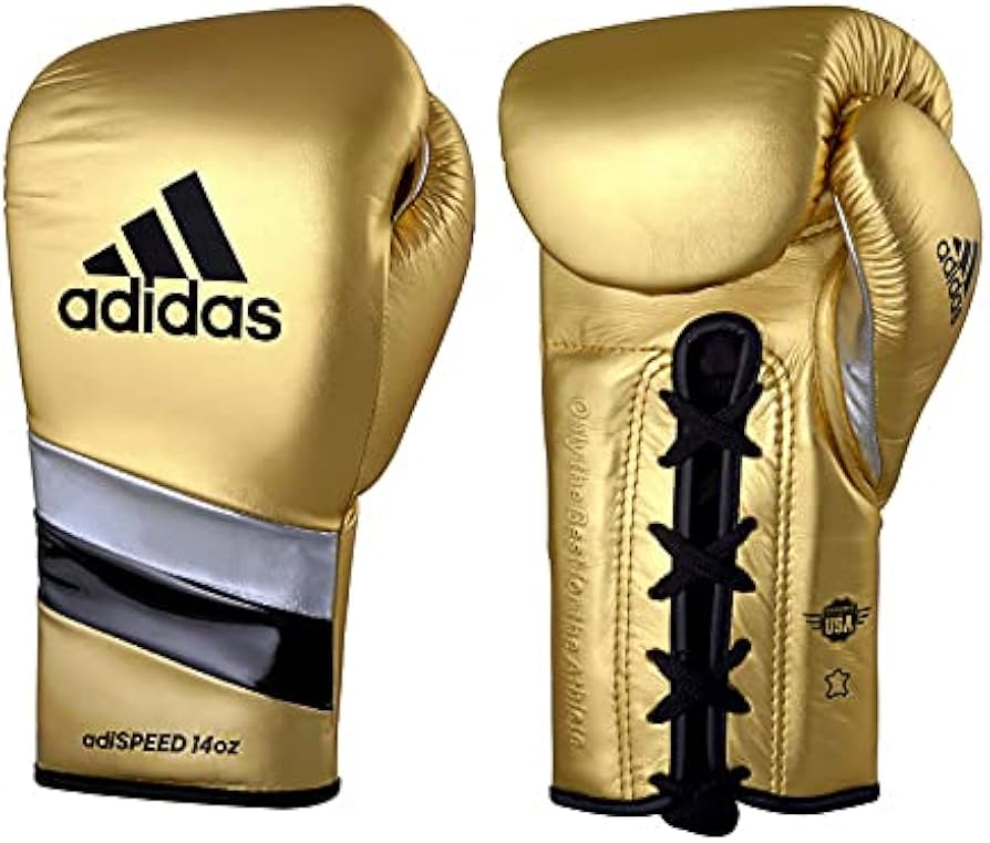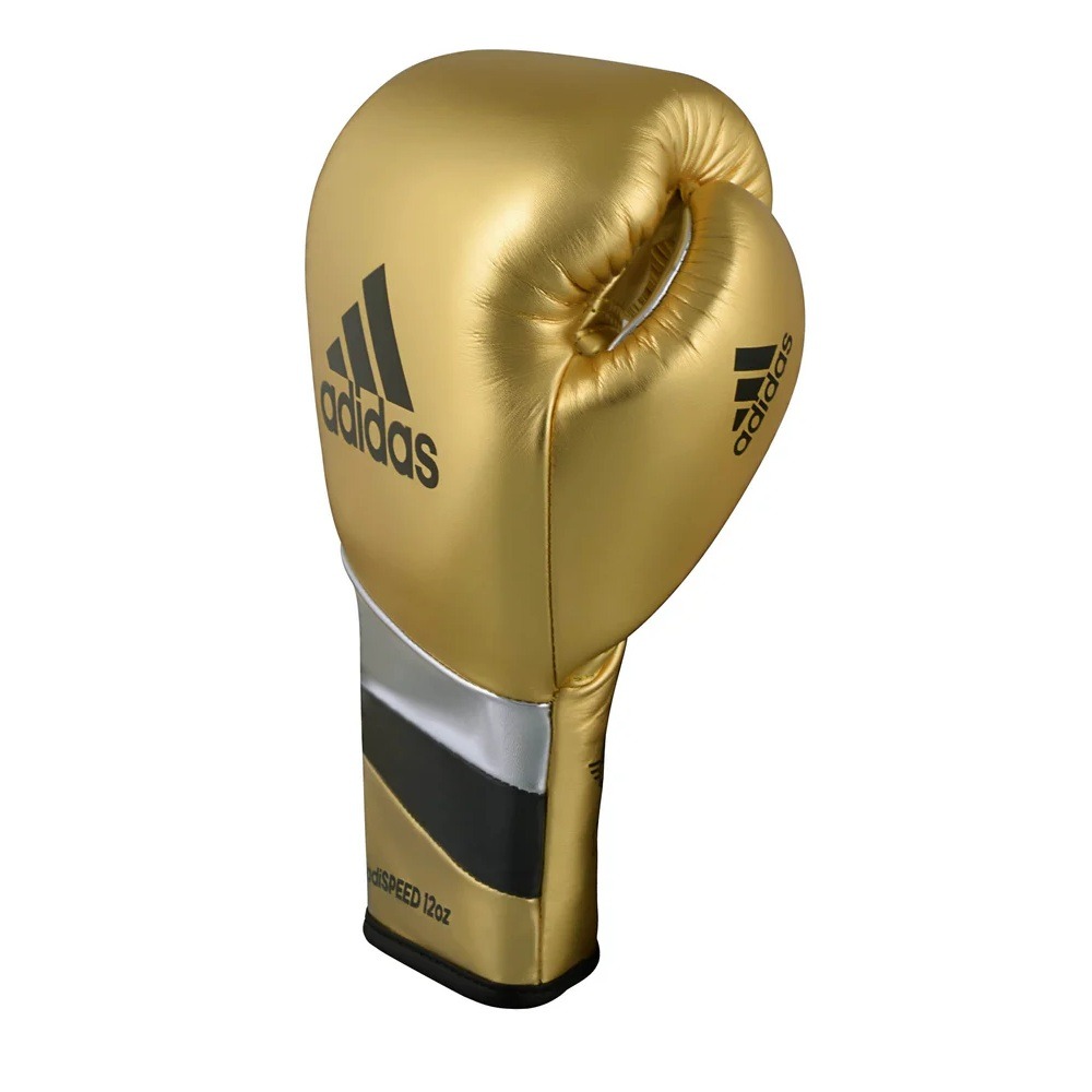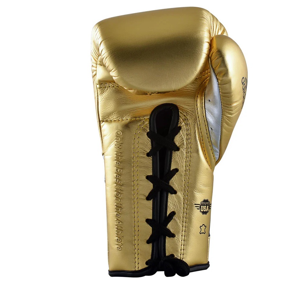 Adidas Adi-Speed 500 Pro Lace-Up Boxing and Kickboxing Gloves Size 14 oz Gold/Silver/Black
