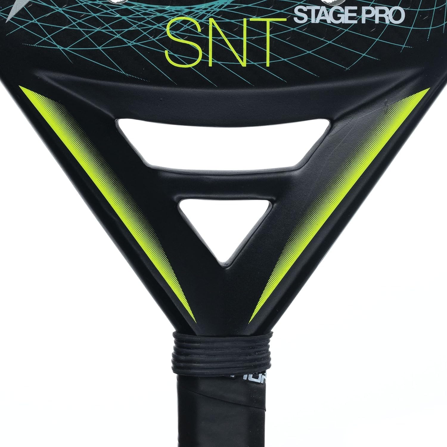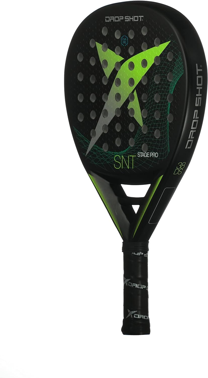 DROP SHOT STAGE PRO Drop Shot Stage Pro padel racket The new collection of Drop Shot 2022 padel rackets comes to the market to be the most reliable answer in versatility where the wide variety of models will allow all profiles to find a model that adapts to their conditions and needs. Within the Eseential Line is the Drop Shot Stage Pro paddle race, a model that has a marked offensive nature and has been designed to give a high performance in the attack. This Drop Shot padel racket is committed to a teardrop format, medium-high balance and a wide sweet spot that maximizes performance in positions close to the net by increasing the definition capacity. The Drop Shot Stage Pro is committed to a natural, simple and exquisite manufacture where the Twin Tubular System covers the frame, the faces are composed of Fibre Glass Surface and the inner core is left to a low density Eva Sfot rubber and high impact comfort. A model that also has the distribution of the Smart Holes System holes or the Silicone Grip Channel and Cork Cushion grip technologies to reduce vibrations. And also, this new Drop Shot Stage Pro looks and much for its avant-garde design. Yellow and turquoise combine on the faces shaping different geometries, leaving small details to the shades in silver.