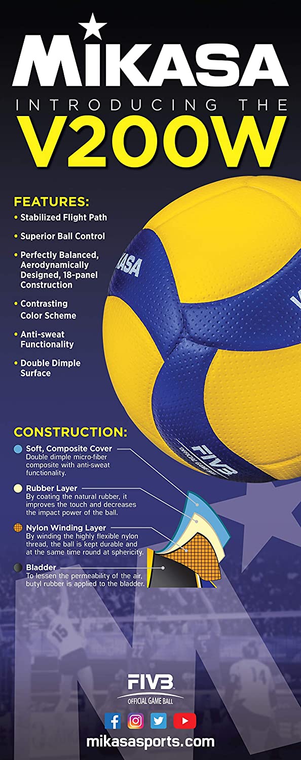 The V200W features a perfectly balanced, 18-panel aerodynamic design that improves ball movement and gives players greater control. With enhanced visibility, the new indoor ball will optimize the quality of play and maximize excitement on the court.