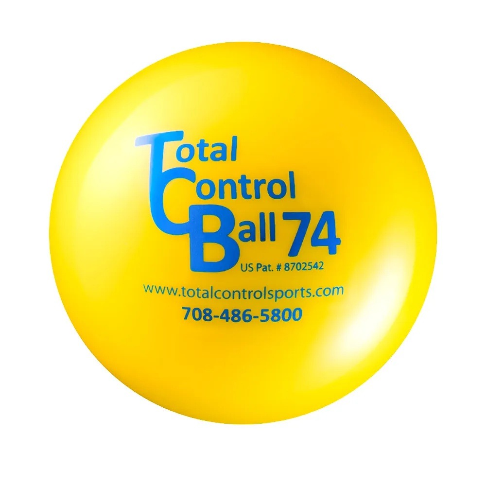 The Total Control Ball 74 (TCB 74) is a 2.9-inch, 425-gram (15 oz) weighted training ball designed to improve baseball/softball batting strength, swing mechanics, and hand-eye coordination. Made with a durable, flexible shell filled with sand-like material, it provides instant feedback and is safe for use with all bats, allowing for close-range, limited-flight training.