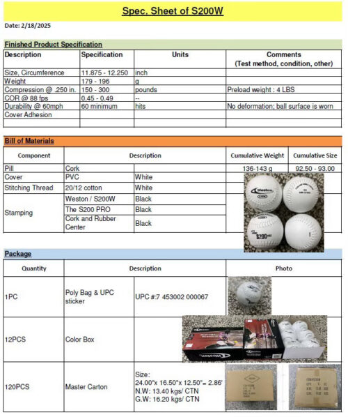- Circumference of approximately 12 “(30 cm) and weight of approximately 180 grams